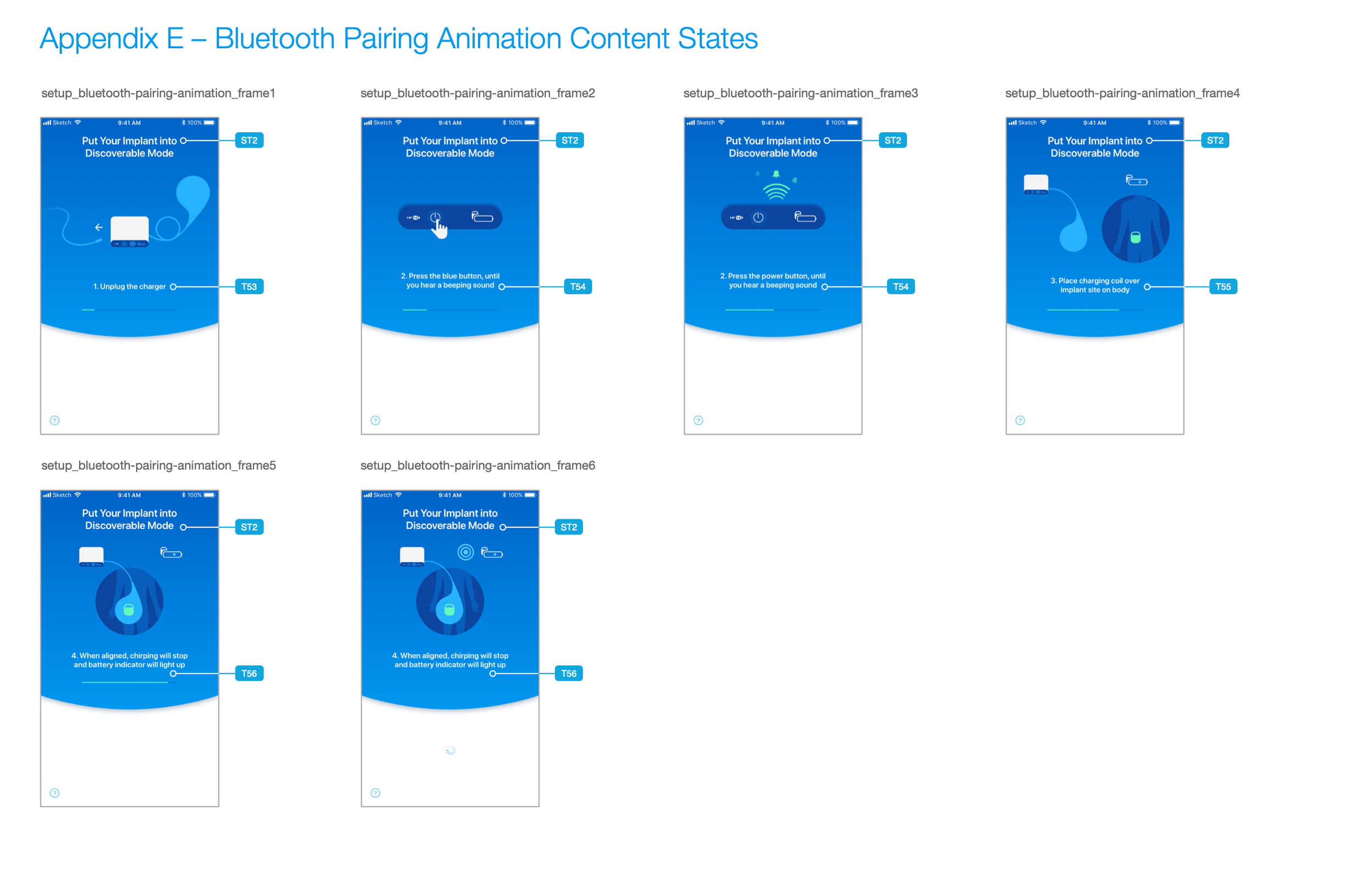 After conducting tests with the prototype above, our UI Designer could create visual designs and animations that would assist the patient in pairing via bluetooth. Those are shown below.
